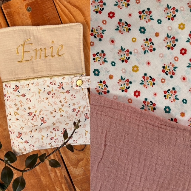 Ce carnet de santé est un modèle de démonstration. Le carnet final sera confectionné avec le tissu présenté ci-dessous et personnalisé avec le prénom du bébé, que nous gardons confidentiel