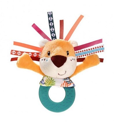 Jack le lion, le nouveau copain des tout-petits dès 3 mois ! Avec sa double fonction, ce hochet anneau de dentition est conçu pour offrir à votre bébé une expérience sensorielle complète et apaisante. Avec ses dimensions idéales de 15 x 4 x 17 cm, il est facile à saisir par les petites mains, et permet de développer la motricité fine des petits. L’anneau de dentition bleu aide à soulager les poussées dentaires et offre un réconfort immédiat à bébé. Il est relié à la peluche Jack le lion par un ruban de satin, pour plus de sécurité.