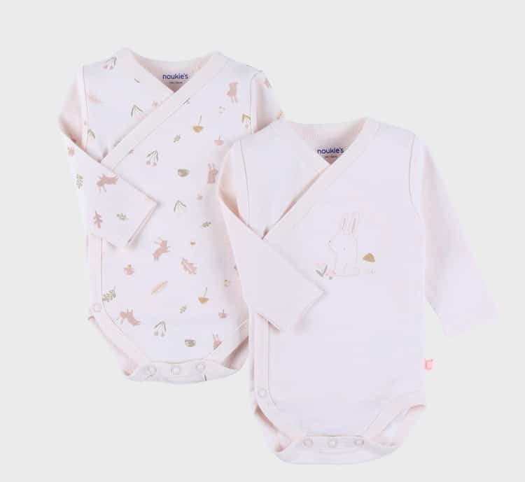 Ces deux bodies manches longues avec ouverture croisée devant, en jersey certifié Oeko-Tex, sont parfaits pour la peau délicate de bébé.
