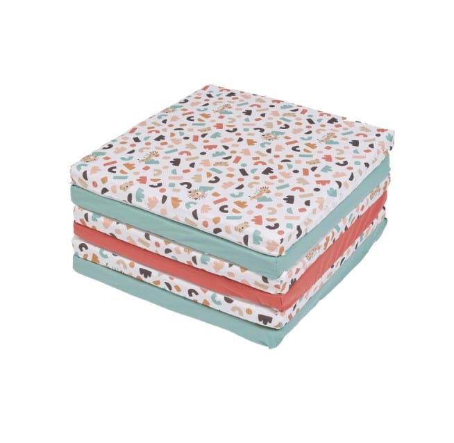 - Plié en trois, il devient un maxi pouf pour un siège d’appoint et/ou une solution pratique pour ranger le produit facilement à la fin de la journée (60 cm x 60 cm x 30 cm).
